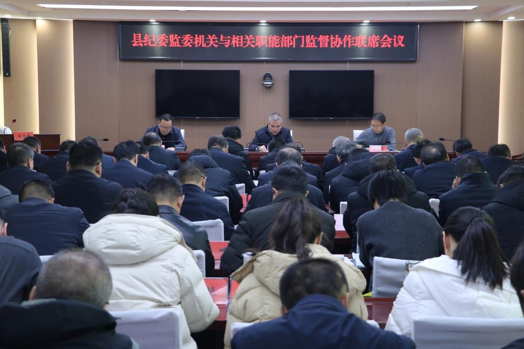 会议强调,要坚持问题导向,推动各类监督由单打独斗向集成作战转变,由被动化解向主动监督转变,由点上解决向面上整治转变,由表象纠治向深度治理转变。要精准持续发力,进一步深化信息共享、联合研判、联合监督、线索移送机制,高质量推动各类监督贯通协同任务落地见效,将反腐制度的笼子编织得更加严密结实,为我县经济社会高质量发展提供更加坚强的保障。
