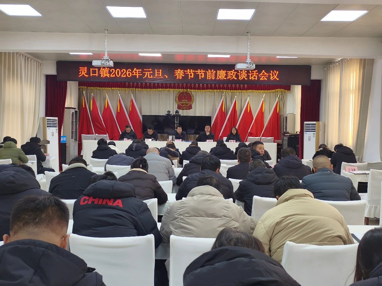 12月29日,灵口镇组织召开元旦、春节节前廉政谈话会,敲响节日“警钟”,全面落实中央八项规定精神,驰而不息纠正“四风”,营造风清气正的节日环境。