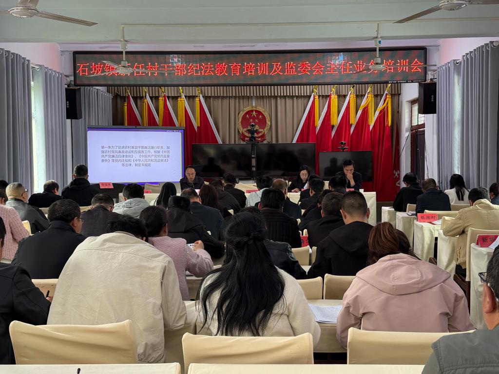 为深入推进全面从严治党向基层延伸,切实提升新任村干部的纪法意识和履职能力,近日,石坡镇组织召开新任村干部纪法教育暨监委会主任业务培训会。全镇各村(社区)党支部书记兼村委会主任、党支部副书记、监委会主任参加培训