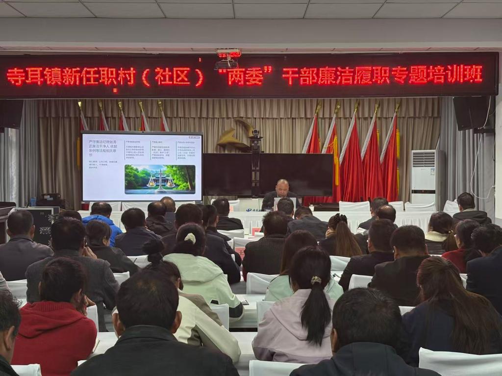 4月21日,寺耳镇举办新任职村(社区)“两委”干部廉洁履职专题培训班,全镇60余名新一届村(社区)“两委”班子成员参训。此次培训旨在帮助新任基层干部系好履职“第一粒扣子”,强化纪律规矩意识,提升廉洁从政能力,切实担负起服务群众、推动发展的重任。